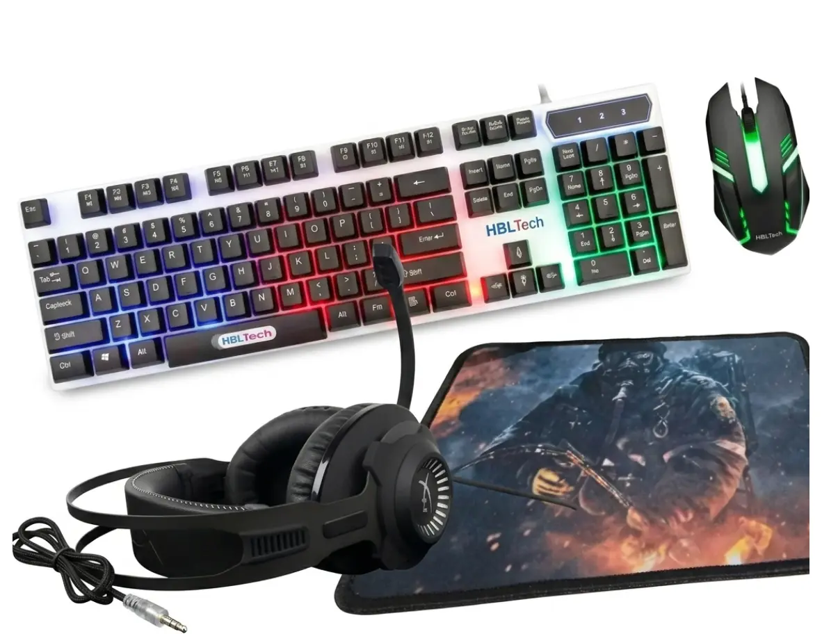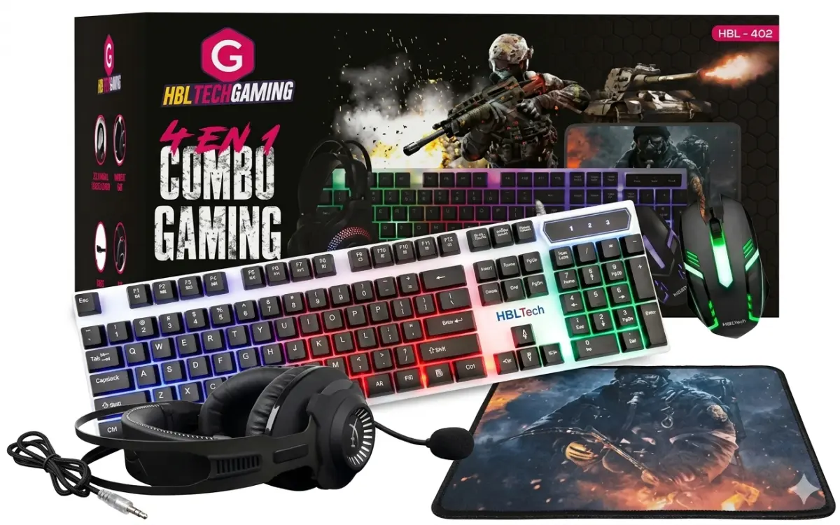 Combo Gaming 4 en 1 RGB – Kit completo para jugadores (Teclado + Mouse + Auriculares + Mousepad)